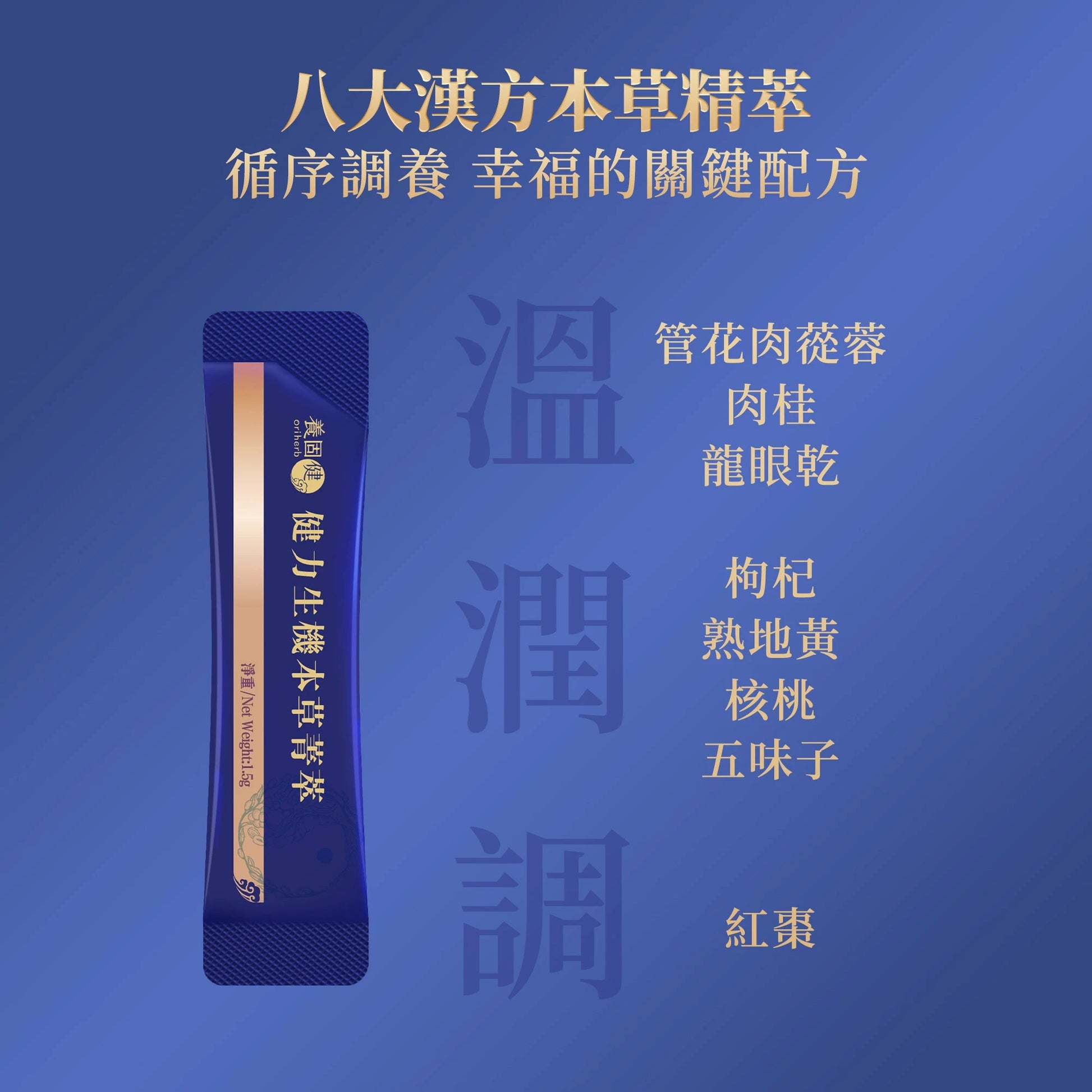 DIRECTIONS FOR USE: 2 times daily, 1 sachet per use. Mix each sachet with 100ml of hot water and stir well Key Ingredients: Arillus Dimocarpus longan,Fructus Ziziphus jujube, Fructus Lycium barbrum, Radix Rehmannia glutinosa, Preparata Semen Juglans regia, Herba Cistanche tubulosa, Taurine, Fructus Schisandra chinensis, Cortex Cinnamomum cassia, Inulin FDA number:10-3-06461-5-0034