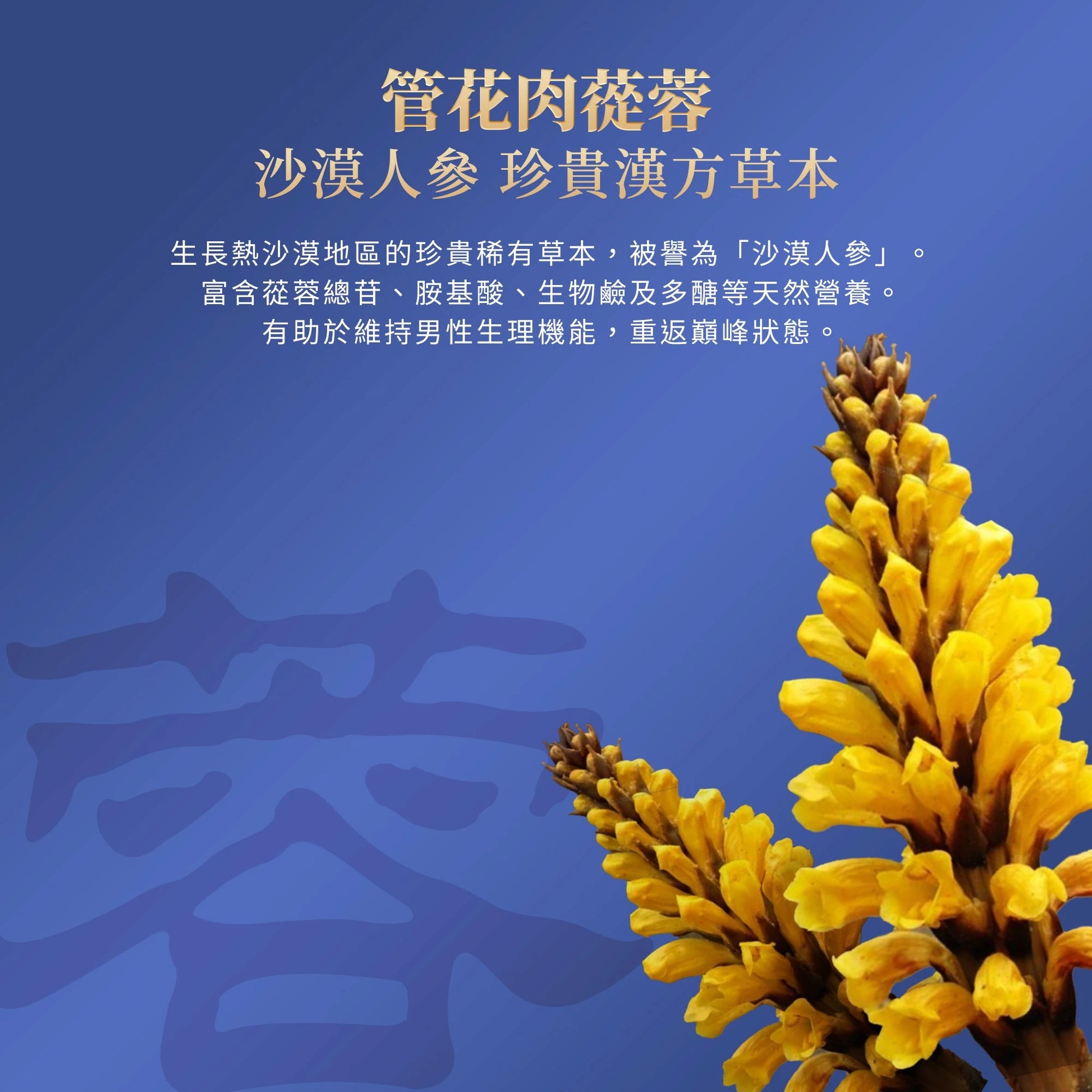 Product Features: - Premium ingredients also known as “the ginseng of the desert”, supplemented with natural healing Chinese herbs - 100% plant-based, mild, pure and vegan-friendly formula - Individual sachets in powder form – easy to carry, easy to absorb - No added excipients, sugar, artificial flavors, colors and preservatives