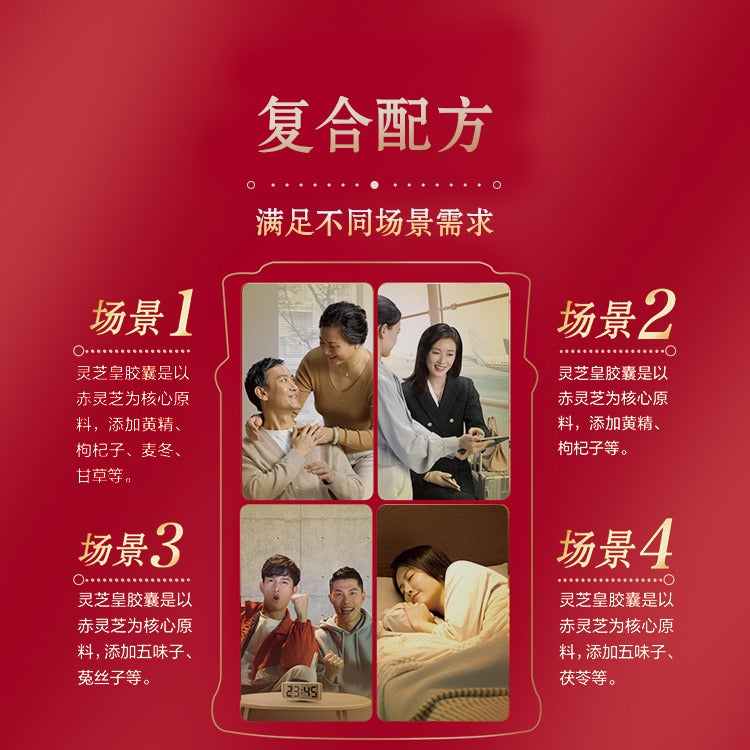 experiments, this product selects segwood-grown Ganoderma lucidum and scientifically combines nine ingredients: Polygonatum sibiricum, Lycium barbarum, Ophiopogon japonicus; Atractylodes macrocephala, Poria cocos, Coix lacryma-jobi; Schisandra chinensis, Cuscuta chinensis; and licorice. It has health care functions of immune regulation and aging delay. - Rich in Ganoderma polysaccharides, it enhances the body's immune surveillance and