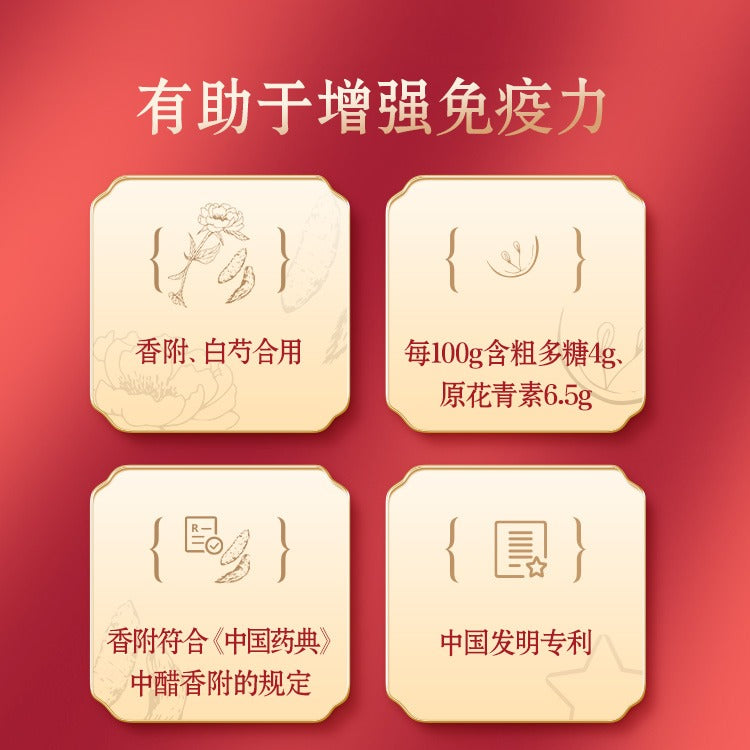 - Inheriting traditional Chinese wellness wisdom, this product is crafted with six premium herbal ingredients: Cyperus rotundus, white peony root, rehmannia root, Codonopsis pilosula, Lycium barbarum, and Polygonatum sibiricum.
